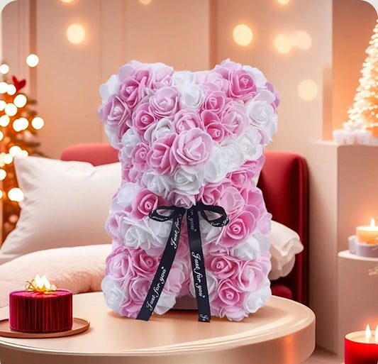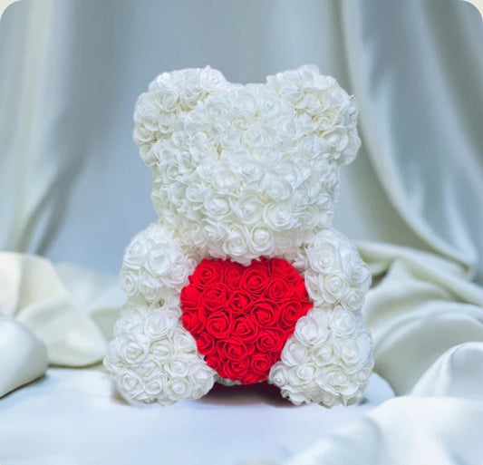 Ourson en Rose Coeur - Blanc