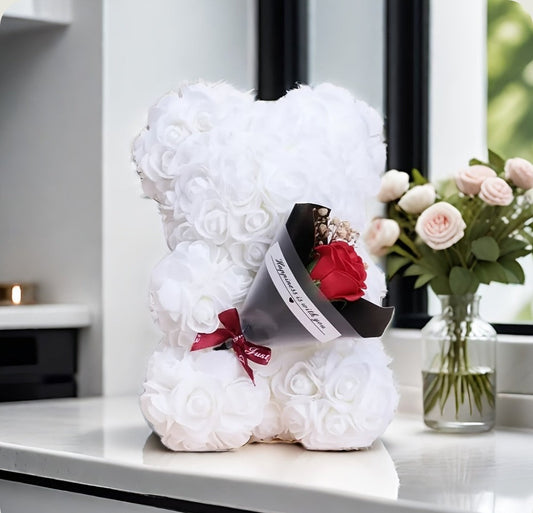 Ourson en Rose Bouquet - Blanc